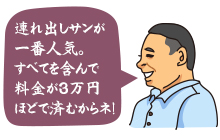そ現在の御当地の裏では、やはり何と言っても連れ出しサンが一番人気だろう。というのも、この遊びだとすべてを含んで料金が3万円ほどで済むからだ。つまりそれほど高くはない。ただし、あまりにもスケベ面をして鼻の下を伸ばしていると、下心に付け込まれてフッカケられることもある。だから用心、用心なのだ。
