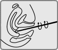 ③ 綿棒を挿入し、子宮膣部より子宮頚管内へ捻綿子を入れ、5~10秒間回転させ抜き出します。
